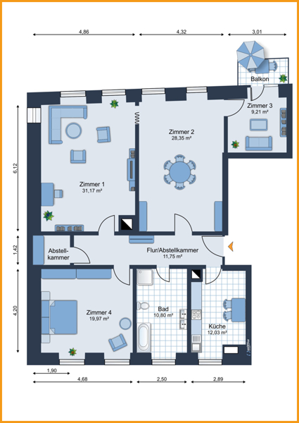 | Wohnfläche | 123 m² | Anzahl Zimmer | 3,5 |